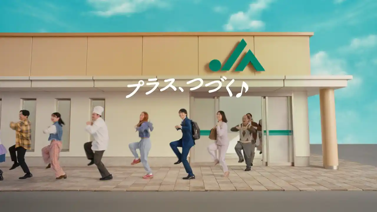 | 今回のCMは、「JAバンクに行くことで、毎日のくらしに“プラス”が生まれる」をテーマに制作しました。新CM冒頭は、心弾むメロディに合わせて、街の人々が楽しげなステップで行進し、JAバンクの店舗へ向かうシーンから始まります。リズムに乗って一歩ずつ進む軽やかな足取りからは、日常に喜びが加わるワクワク感が溢れ、見ている人の心まで明るくするような温かい世界観を描いています。さらに、杉咲花さん演じるJA職員「ハナちゃん」が店舗を訪れる方々へ「+クッション」を手渡す姿を通じて、JAバンクが一人ひとりの暮らしに寄り添い、安心や喜びを届ける存在であることを表現しています。 | |||||||||||||||||||