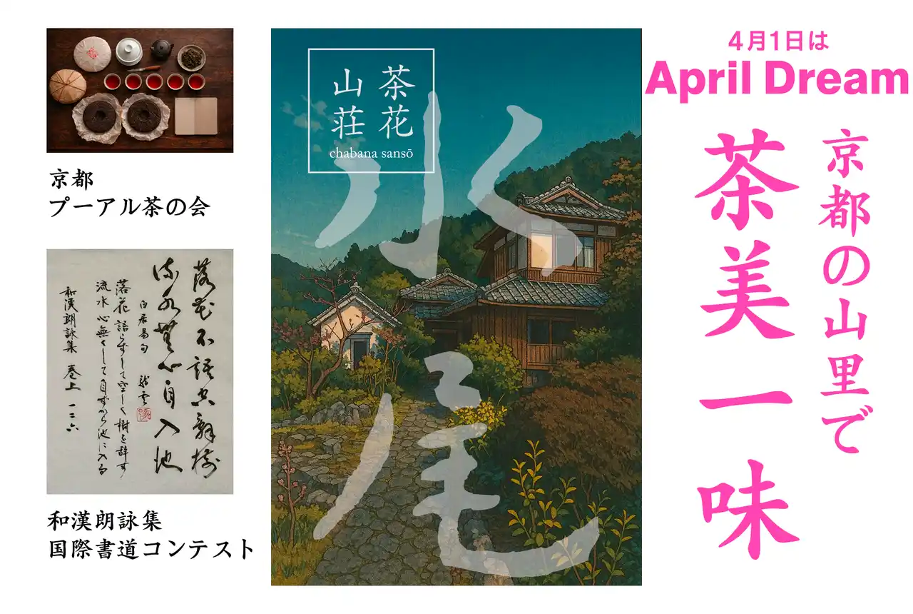 | 京都市右京区嵯峨水尾に位置する茶花山莊は、陶芸・書道・篆刻・茶にまたがる創作活動の拠点です。二つのギャラリーと柚子畑を持ち、毎月の「京都プーアル茶の会」、年一回の『和漢朗詠集』書道コンクール(第二回は2026年10月30日締切)などの文化活動を行っています。 | |||