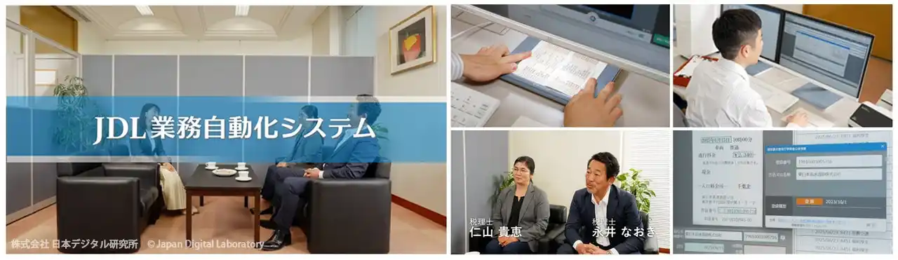| ※動画『JDL業務自動化システム』に登場する会計事務所および税理士等は架空のものです。実在する同名の会計事務所、個人とは、一切関わりはありません。また、劇中にて使用している通帳および証ひょう等は架空のものです。 | |||