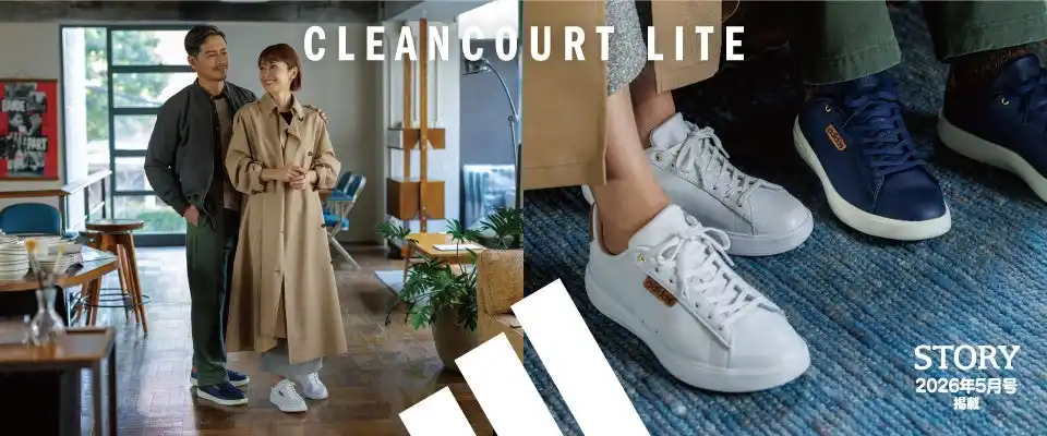 “軽く、ラクで、疲れにくい”という要素を兼ね備えた新作「CLEANCOURT LITE」シリーズの、レザーアッパー使用モデル。上質なレザー素材の採用で、カジュアルなスニーカーでありながらもスマートで洗練された印象を演出します。日常の街歩きから休日のお出かけまで、歩きやすさと上品さを両立した一足が、大人の足元を軽やかに彩ります。 |