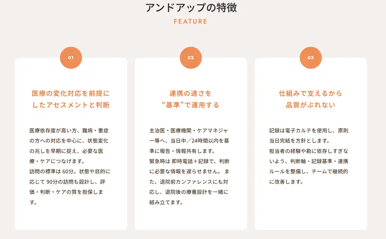 | 【アンドアップ訪問看護ステーションの特徴】 | |||