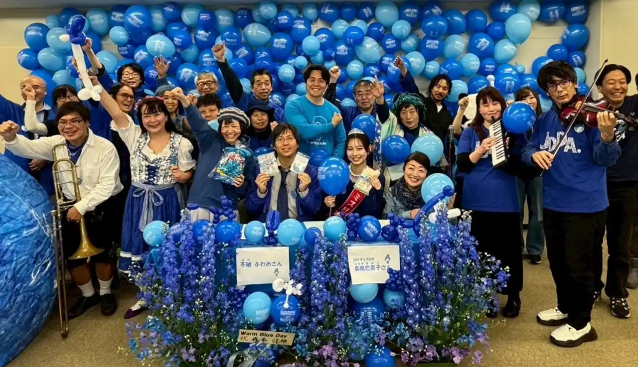 | 3人のブルーの衣装は、世界自閉症啓発デーに「Beyond Blue Project」を展開するヘラルボニーさんが提供してくださいました。 | ||||||||||