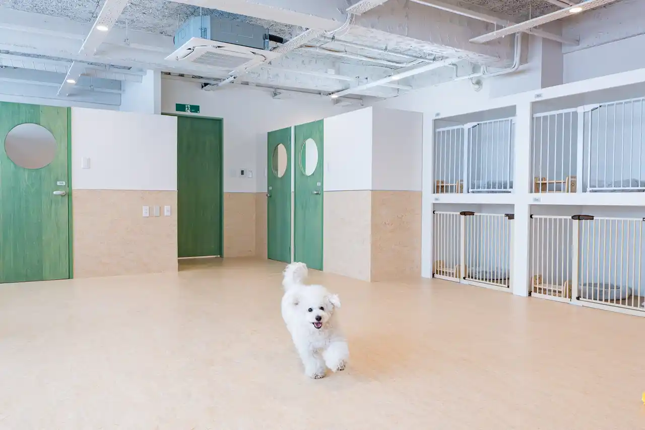 愛犬の健康を守り、リラックスして過ごせる快適な空間。清潔な飲水と空調設備、歩行にやさしい床材、刺激の少ない照明など環境設計にもこだわっています。愛犬がもう一泊したくなるような第2の家のようなホテルを目指しています。 |