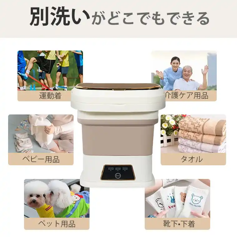 旅行・出張・アウトドアを楽しむ方 コンパクトに折りたたんで持ち運べるため、ホテルやキャンプなどでも手軽に洗濯可能。長期滞在やアウトドアでも活躍します。 |