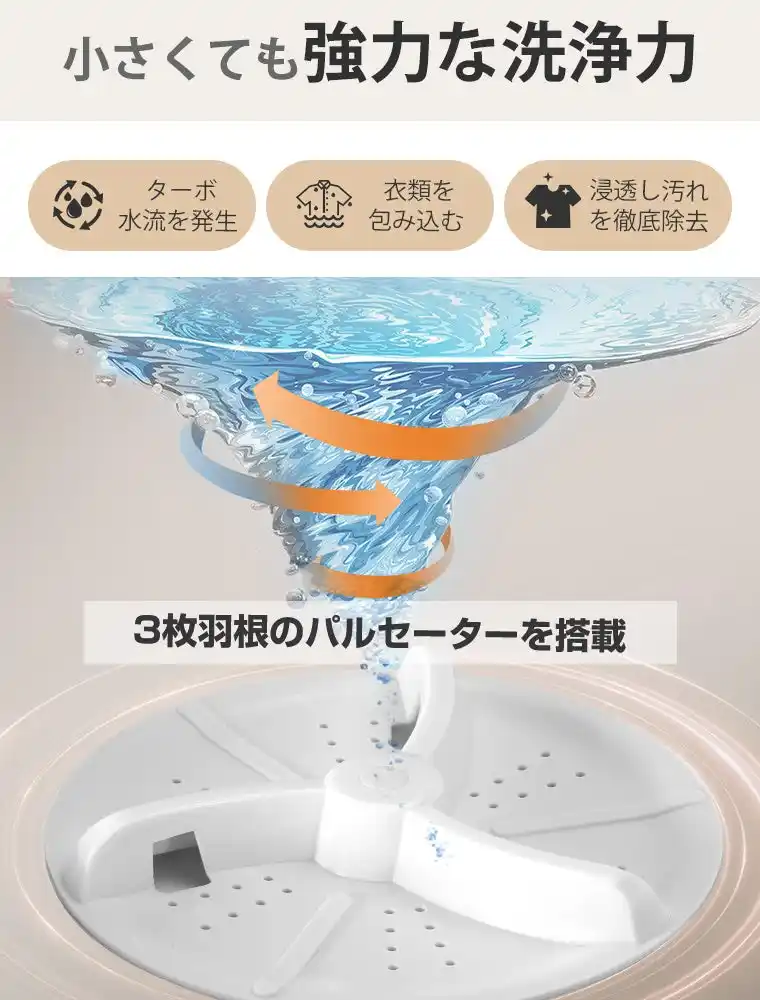 見た目はコンパクトながら、しっかり洗える13Lの大容量設計。タオルや下着、ベビー服はもちろん、ペット用品までまとめて洗えるので、洗濯の回数を減らして家事の負担をやさしく軽減します。一人暮らしや忙しい毎日でも、無理なく続けられるちょうどいいサイズ感です。 |