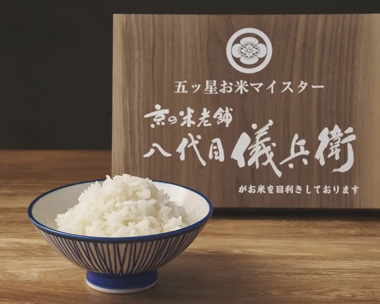 ご提供するお米は、「京都八代目儀兵衛」が目利きを重ねて選び抜いた厳選米を使用。産地や品種ごとの個性、その時季ならではの旬を見極め、さらに米の持ち味を引き出す精米を施したごはんは、豊かな香りと繊細な甘み、ほどけるような口あたりが魅力です。 |