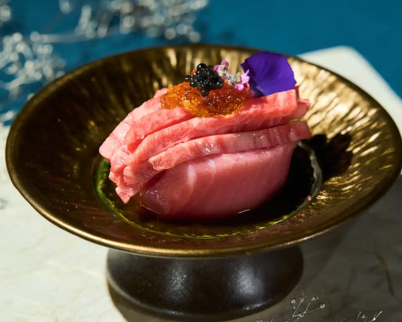 和牛の芳醇な甘みと本鮪の上品な旨みを掛け合わせた「本鮪和牛のユッケ」が新登場。華やかな盛り付けとともに、口の中でほどける贅沢な味わいをお楽しみいただける、牛の達人 浅草店ならではの一皿です。 |
