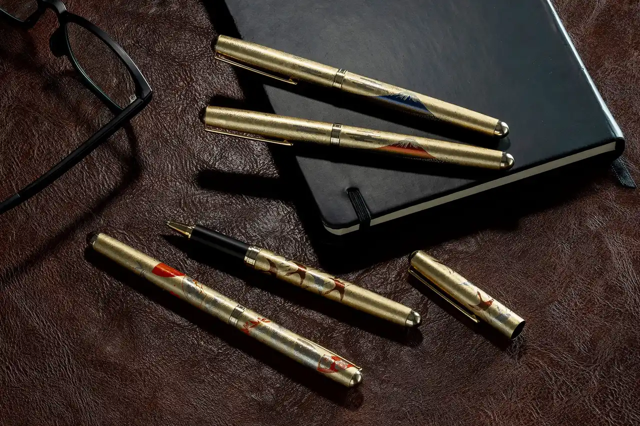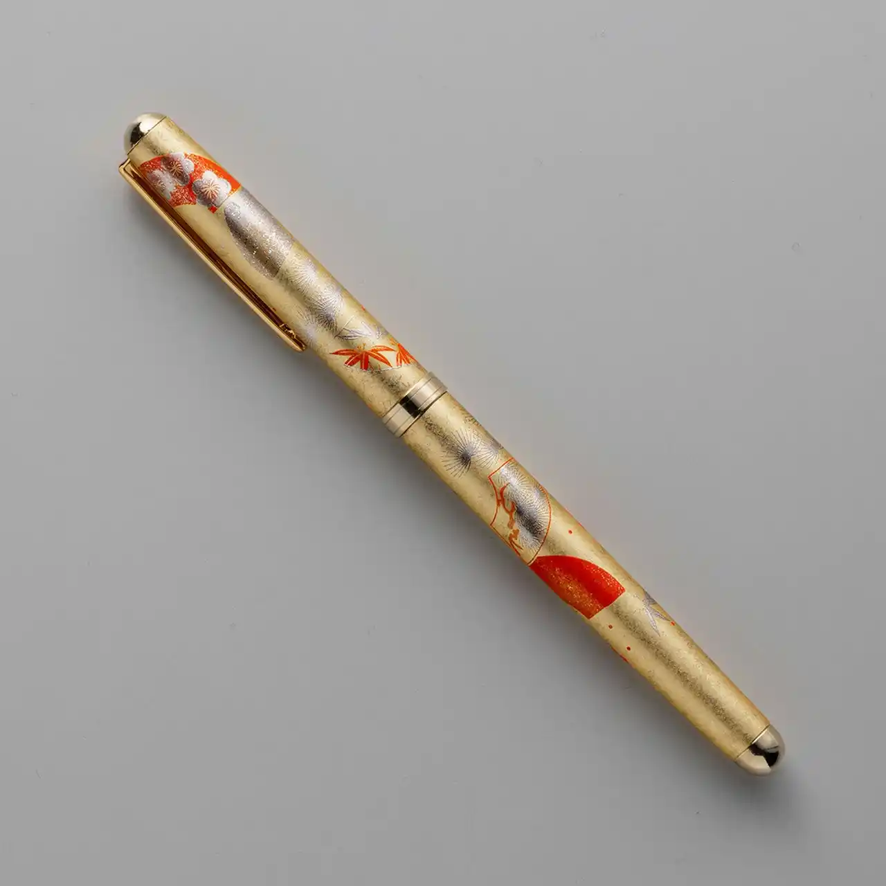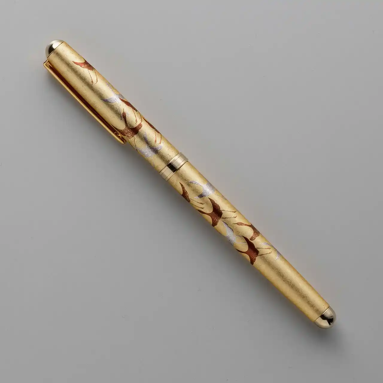 金箔の柔らかな輝きと、蒔絵による前途を祝す縁起物がほどこされた、贅沢な一品です。これまで海外の要人へ贈る品としても選ばれてきたその風格は、リニューアルによってさらなる高みへ。単なる筆記具の枠を超え、手にするたびに日本の伝統的な慶びを感じさせる、芸術品のような佇まいを追求しました。 |