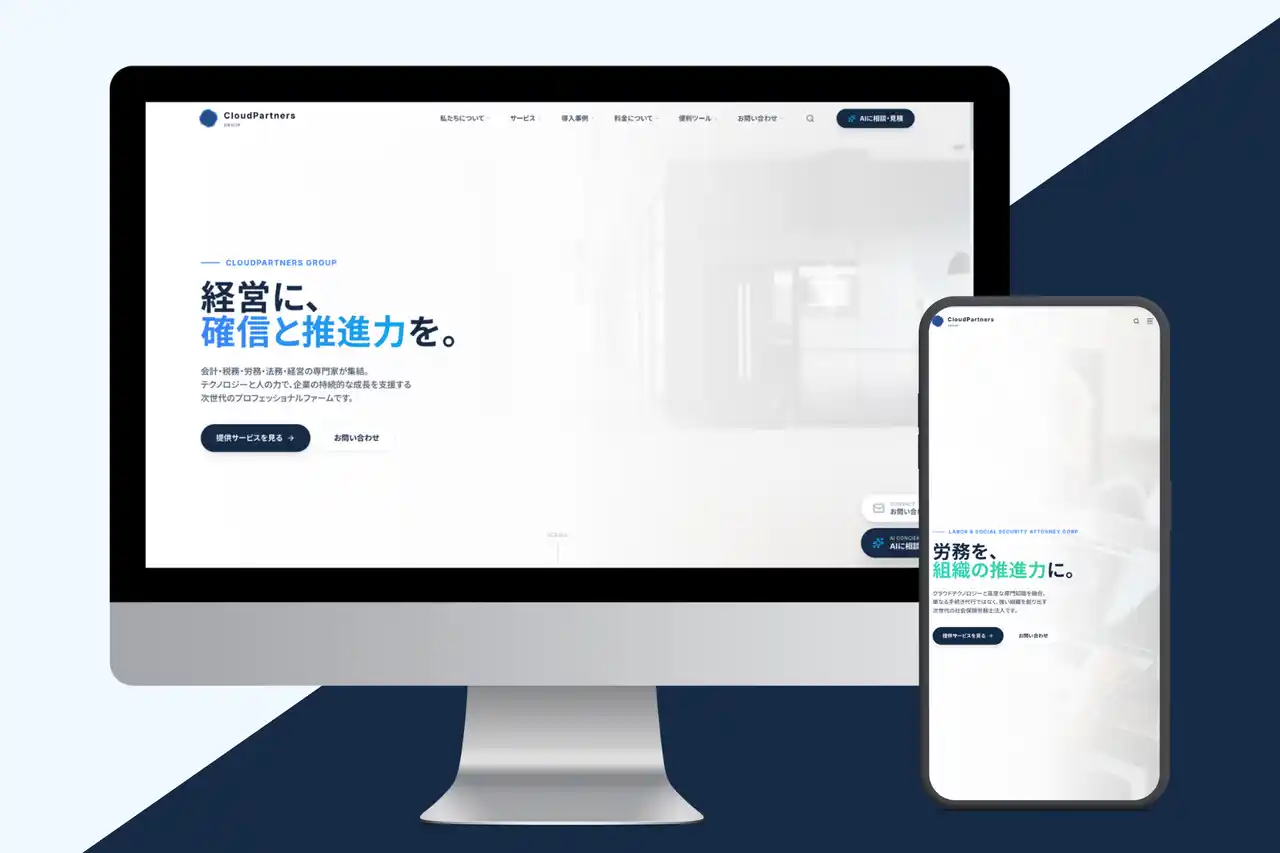 企業の資金調達、バックオフィスDX、そしてAI技術の社会実装を包括的に支援するクラウドパートナーズグループ(本社:東京都千代田区、代表:村井 隆紘)は、当グループを構成する「税理士法人クラウドパートナーズ」「社会保険労務士法人クラウドパートナーズ」「株式会社クラウドパートナーズ」「株式会社AIパートナーズ」の4法人の提供価値を統合し、シームレスな経営課題解決を提供する新たなコーポレートサイト( https://cloudpartners.jp )を本日より公開いたしました。 |