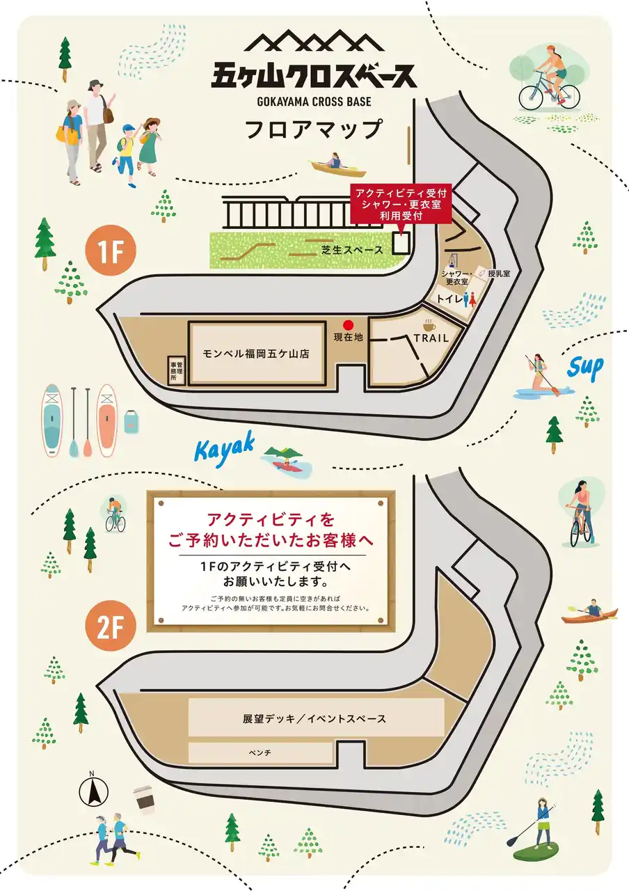 | 本共同事業体は、那珂川市が掲げる水源地域の「回遊促進と地域活性化」の実現を運営の中核として据えた「街近×水辺-はじまり(回遊)が生まれる拠点づくり」を運営方針として掲げ、五ケ山クロスベースとダム湖面を活用したカヤック体験やSUP体験等のアクティビティを起点として、地域全体への波及効果を創出してまいります。 | ||||||||||||