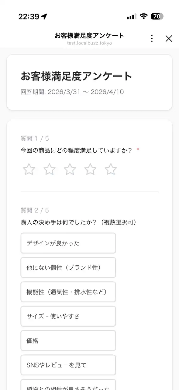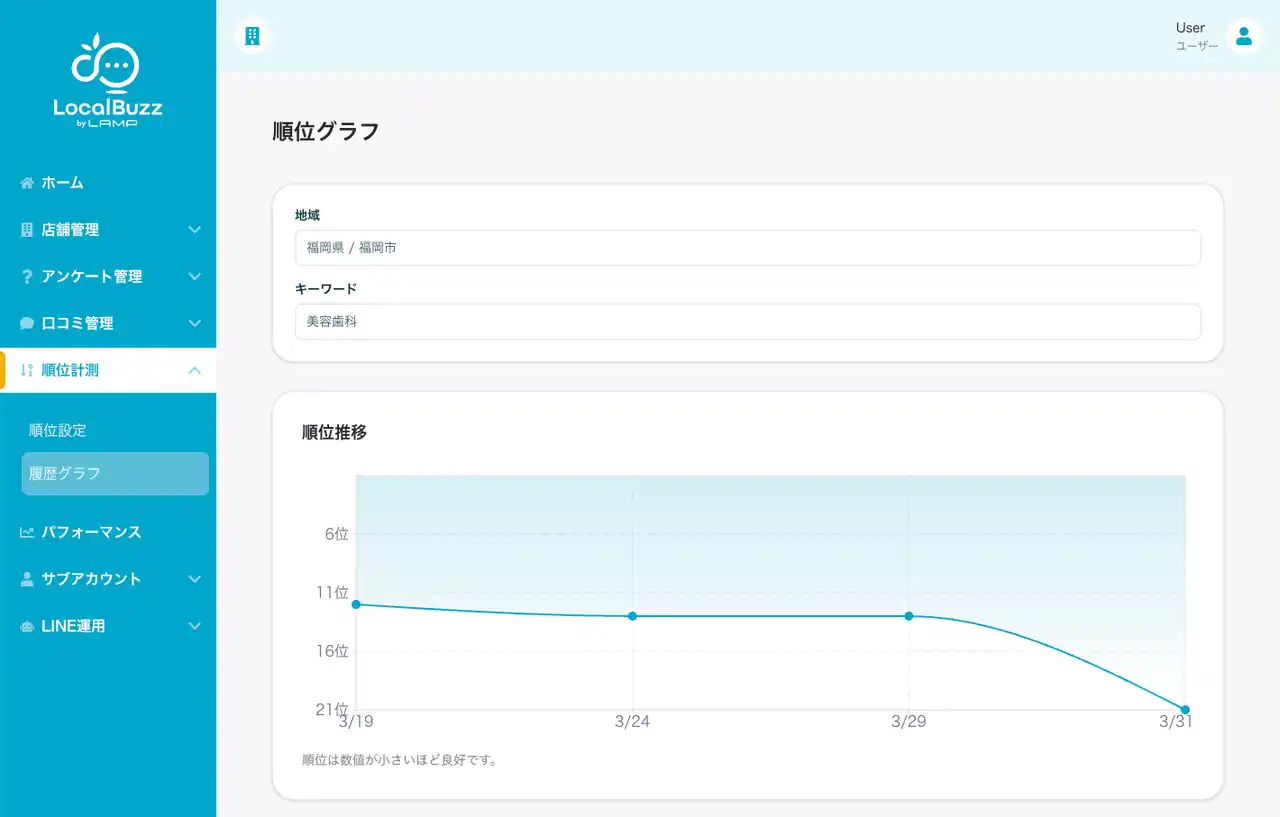 LocalBuzzは、検索順位を計測するだけの従来型MEOツールとは異なり、口コミという「信頼資産」を継続的に生み出し、育てる仕組みを提供します。D2Cで培ったCRM・レビュー運用の考え方を、リアル店舗向けに最適化している点が最大の特長です。 |