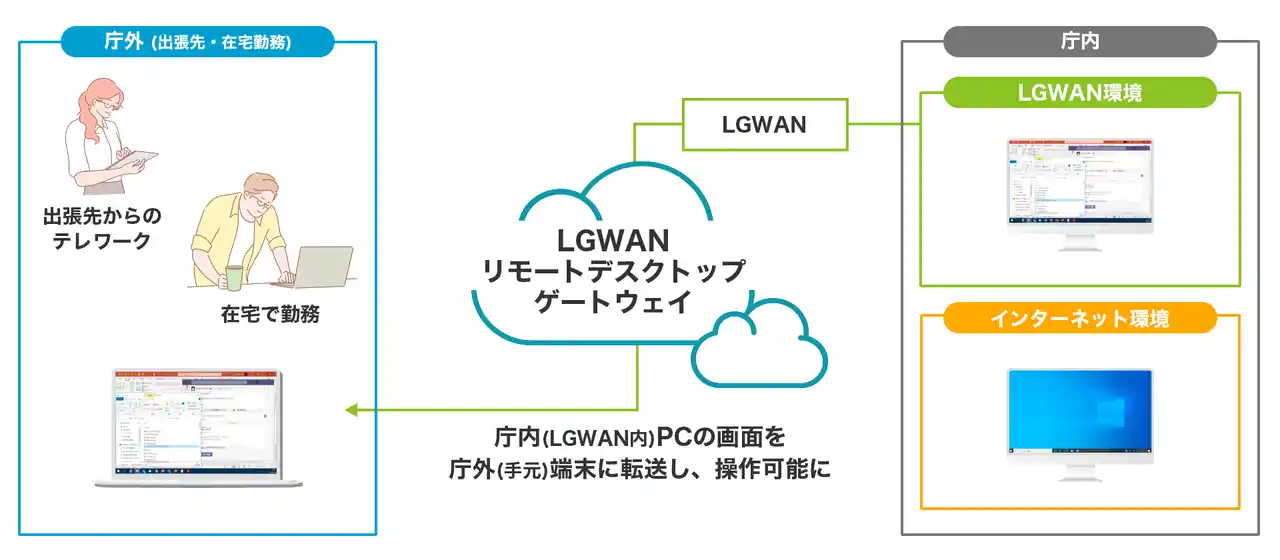 | 自治体においては、労働人口の減少や働き方改革の推進により、業務効率化と柔軟な勤務環境の整備が急務となっており、BCP対策としても「どこでも業務ができる環境」の重要性が高まっています。一方で、LGWAN環境におけるセキュリティ確保と利便性の両立は、依然として大きな課題となっています。 | |||
