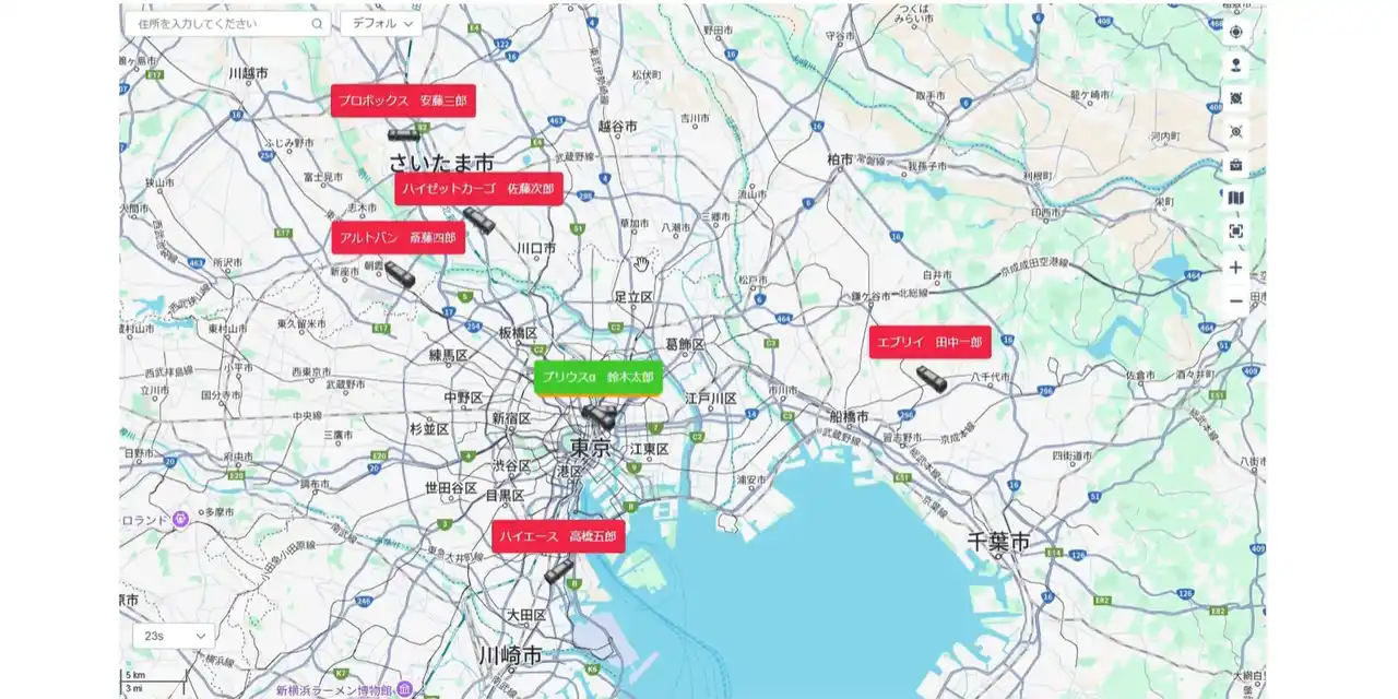 車両の現在位置や移動履歴を確認でき、車両の稼働状況を把握できます。 |