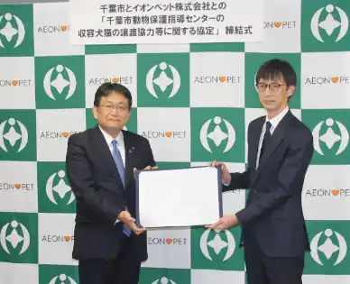 千葉市とイオンペットは、2022年11月に「千葉市動物保護指導センターの収容犬猫の譲渡協力等に関する協定」を締結しました。本協定の締結以降は、千葉市動物保護指導センターに収容された保護犬猫をイオンペットの譲渡型施設「ライフハウス」にて受け入れ、人慣れトレーニングの実施から新たな飼い主さまとの出会いに至るまでの譲渡活動を行うとともに、市民の皆さまへの適正飼育の普及啓発に官民連携のもと取り組んでいます。 |