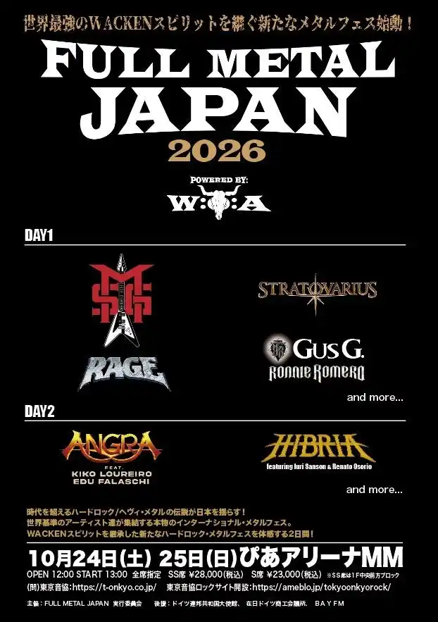 10月24日(土)・25(日) 、神奈川・ぴあアリーナMMにて、「FULL METAL JAPAN 2026 ~Powered by WACKEN~」を開催することが決定しました。 |