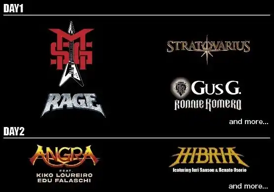 25日がANGRA(featuring KIKO LOUREIRO & EDU FALASCHI)、 HIBRIA(featuring Iuri Sanson & Renato Osorio)。 |