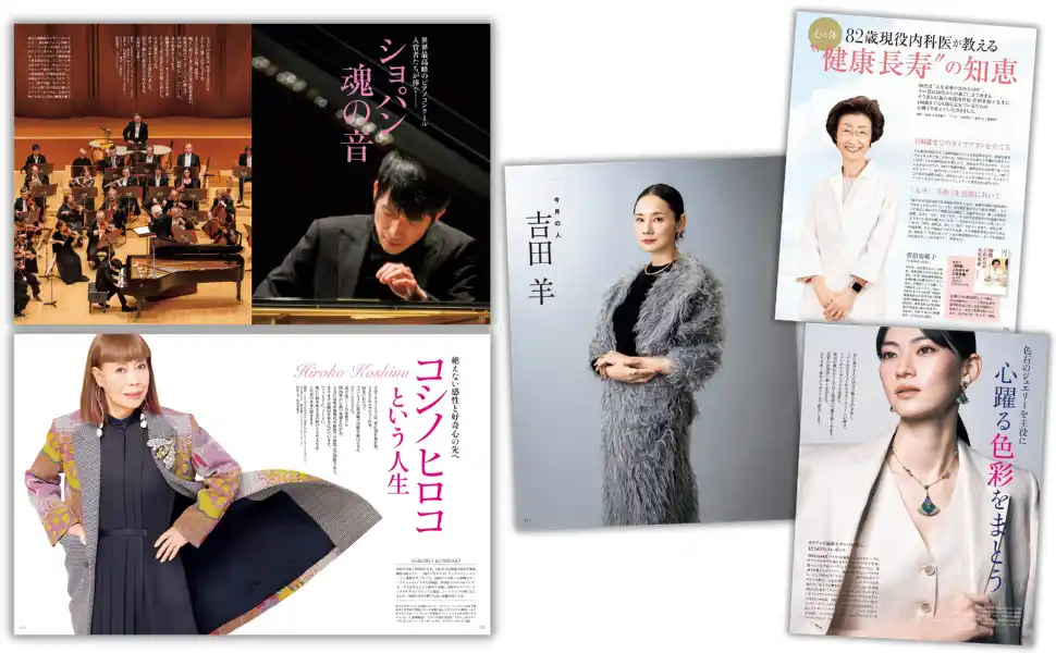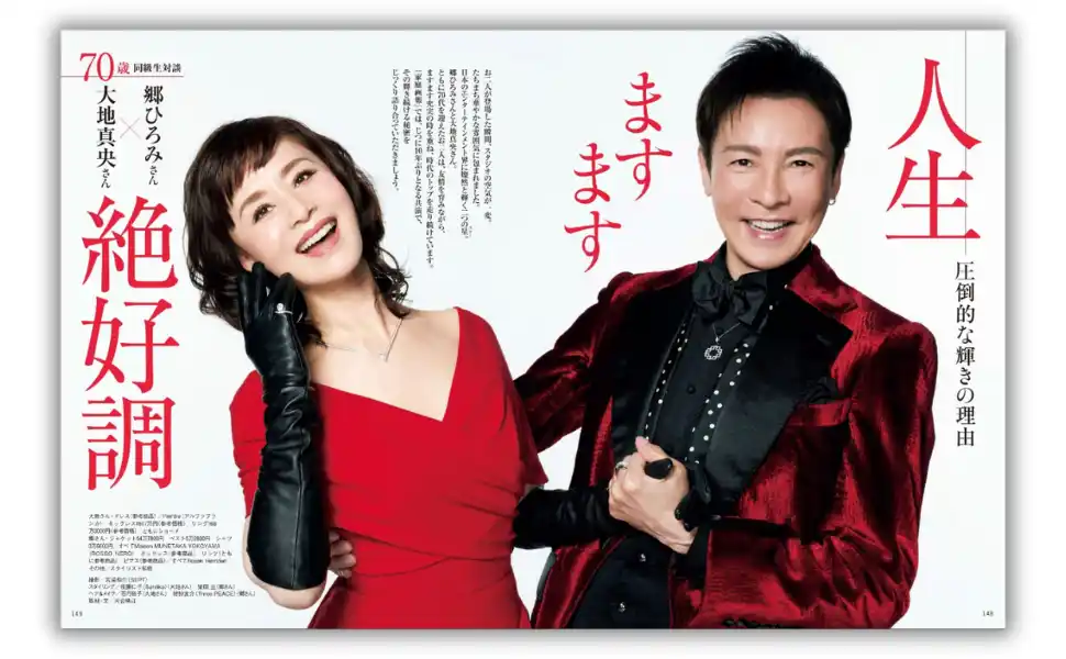 日本のエンターテインメント界に燦然と輝く二つの星、大地真央さんと郷 ひろみさん。ともに70代を迎えたお二人は、友情を育みながら、ますます充実の時を重ね、時代のトップを走り続けています。本誌での共演は、じつに10年ぶり。特別対談、お一人ずつのロングインタビューから、輝き続ける秘密を紐解きます。 |