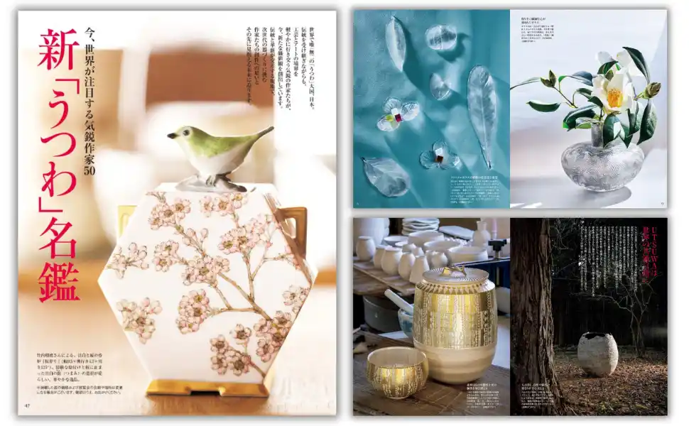 伝統を受け継ぎながらも、工芸とアートの境界を軽やかに行き交う気鋭の作家たちが、今、新たな価値観を創出しています。本特集では、これからを牽引する注目の気鋭作家たち50人を、専門家への取材を経て厳選。作家の工房や、料理人、アーティスト、ギャラリーオーナーを訪ねて出合った「新『うつわ』名鑑」から、あなたにとって特別の、美しきアイテムを見つけてください。 |