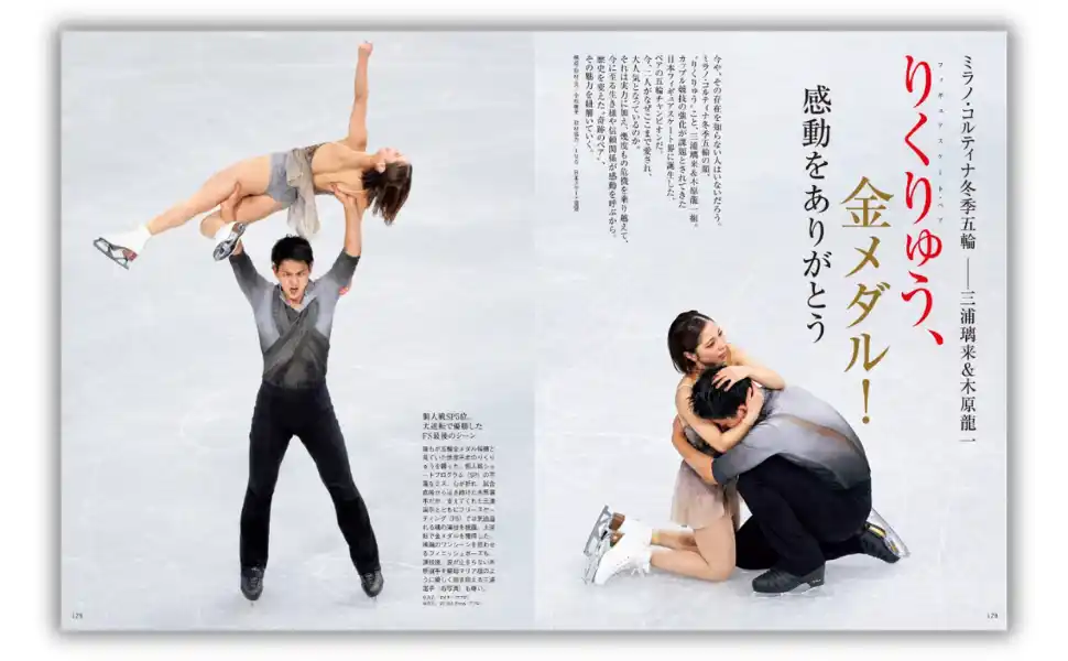 ミラノ・コルティナ冬季五輪の顔、”りくりゅう”こと、三浦璃来&木原龍一組。金メダルを記念し、本誌にご登場いただいた2023年4月号、2026年1月号の撮り下ろしの中からとっておきの写真と、インタビューで特に印象深かったコメントをご紹介します。さらに、五輪後、ブルーノ・マルコットコーチを取材したノンフィクションライター・田村明子さんの寄稿文もお届け。二人がなぜここまで愛されるのか――歴史を変えた”奇跡のペア”の魅力を探ります。 |
