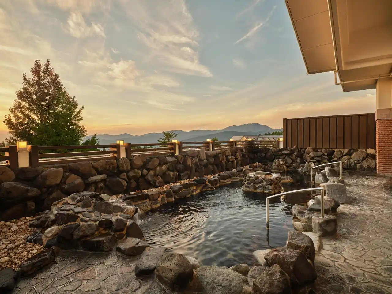 温泉の水質はトゥルっとした質感で、湯が肌をやさしく包み込み、湯上がりには思わず触れたくなるような、すべすべの心地よさ。ジャグジーやサウナも備え、心も体もゆったりとほぐれていきます。露天風呂からは山並みに沈む夕日や満天の星空をご覧いただけます。 |