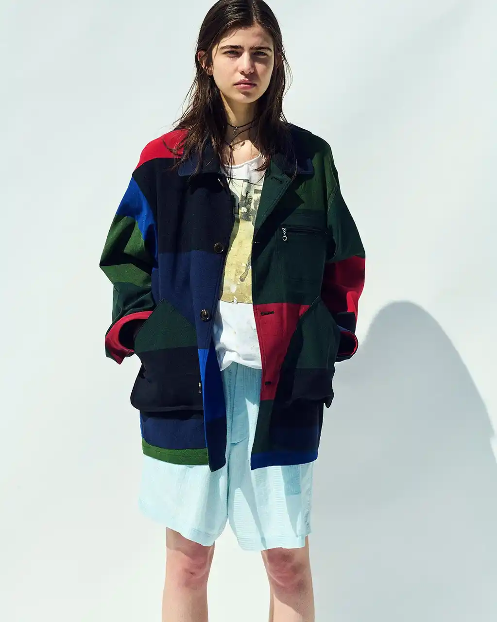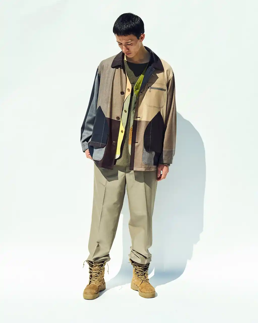 | 「SEVEN BY SEVEN」では、この偶然が生んだ色彩の美しさと、織り組織が描くユニークな表情に着目。長年かけて地道に収集してきたデッドストックのマス見本を、現代のシルエットへと昇華させました。 | |||||||||