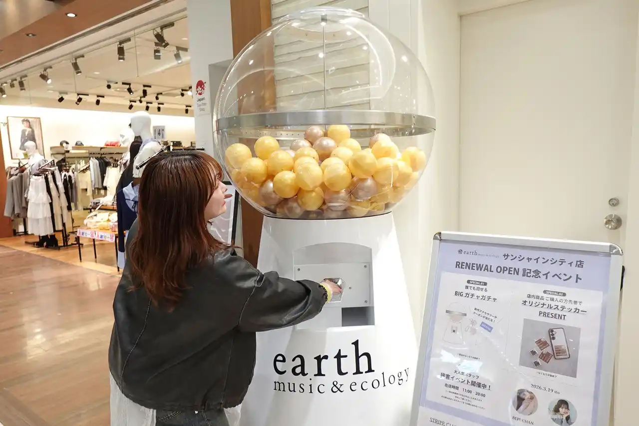 「巨大ガチャガチャ」が新しいお客様との出会いを創出 トレンド・カルチャーの発信地として、平日・休日問わず館内通行客の多い池袋サンシャインシティの特性を意識したリニューアルオープン施策として、通行客の目を引く「巨大ガチャガチャ」を期間限定で設置。誰でも先着で無料チャレンジができるガチャガチャ企画を実施することにより、多くの方が足を止め、店内への入店のきっかけ作りとなりました。また、その場で使えるクーポン券を景品の一つに入れることにより、これまで接点のなかった新規のお客様のご利用につながりました。 |