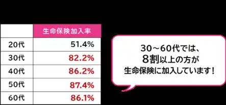 ※上記加入率は、民間の生命保険会社や郵便局、JA(農協)、県民共済・生協等で取り扱っている生命保険や生命共済(個人年金保険やグループ保険、財形は除く)の加入率 |