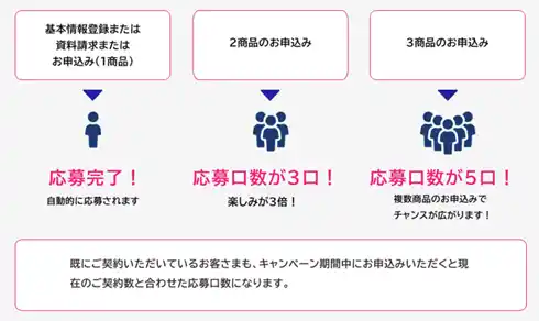 また、既にSBI生命の保険商品をご契約中の方は、日頃のご愛顧に感謝を込めて、現在のご契約数と合わせた応募口数になります。 |