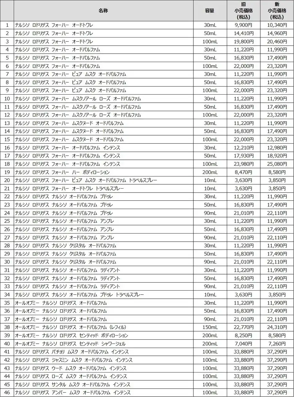 【株式会社資生堂】 〈ナルシソ ロドリゲス パルファム〉価格改定に関するお知らせ