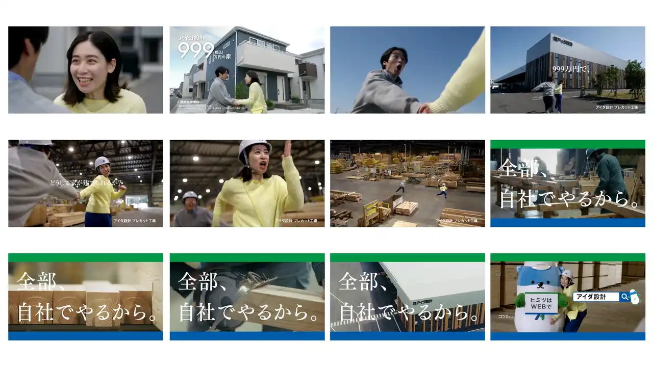 本CMは、リフォームを検討する世帯にも「この価格なら建て替えも選択肢になる」という視点を、コミカルなストーリーで描いています。ホームページではテレビCMの続きとして、自社プレカット工場を舞台に「999万円の家」の安さと品質の秘密を紹介するWEB限定ムービーも公開しています。 |