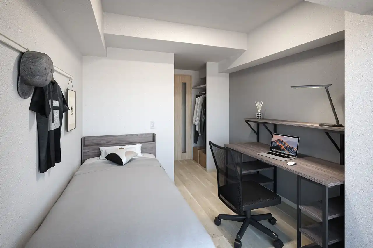 シャワーブース・トイレ付のマンションタイプをご用意。ベッドや2ドア冷蔵庫、洗濯機などの家具・家電に加え、Wi-Fiも完備。引っ越しの手間や費用を抑え、入居したその日から快適な新生活がスタートできます。 |