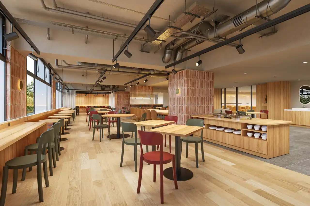 開放的な「オールデイダイニング」や自然と会話が生まれる「コミュニケーションルーム」など、交流を促進する設備が充実。一方で、学習に没頭できる「スタディルーム」や音を気にせず過ごせる「防音ルーム」が備わっており、気分や目的に合わせて使い分けられる、大規模寮ならではの充実した共用部です。 |