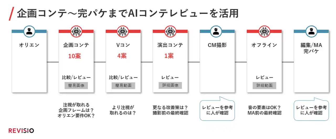 本CMは、俳優の中沢元紀さんを起用し、これまでREVISIOが取得してきた約14万本分のCMデータをもとに「注視される要素」を盛り込んだ内容に仕上がっています。なお、本CMの制作においては、REVISIOが提供する「AIコンテレビュー」を、企画の立案から最終編集に至るまでの全工程で活用いたしました。 |