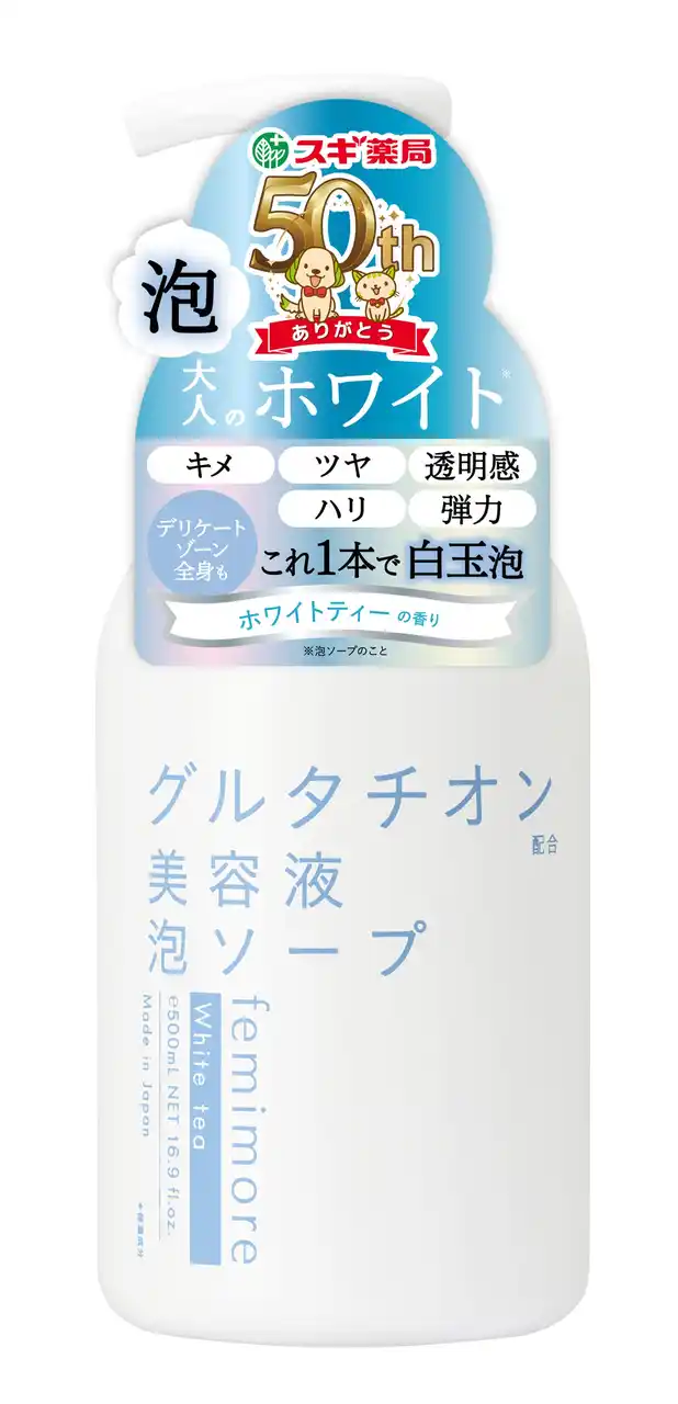 【商品概要】 商品名 :フェミモア 美容液泡ソープG ホワイトティーの香り 内容量 :500mL 本体価格:税抜 1,580円(税込1,738円) 発売日 :2026年4月8日(水) 販売場所:全国のスギ薬局グループにて限定発売 ※一部お取り扱いのない店舗がございます。 |