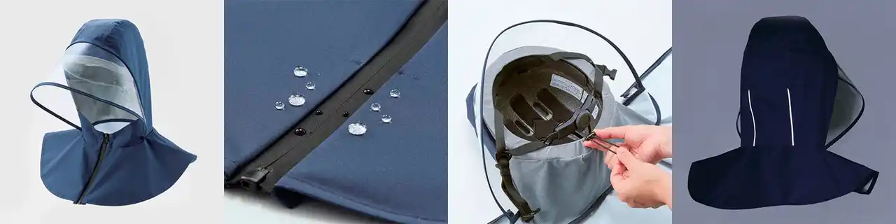 「おしゃヘル レインケープ」で、新しいレインスタイルを。 |