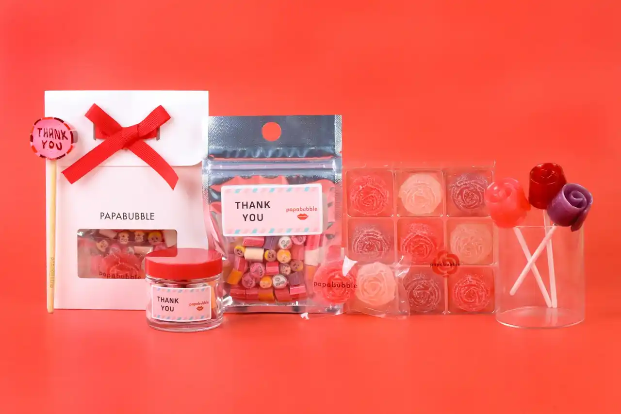 Craft Candy Theater「PAPABUBBLE/パパブブレ」は、「ありがとう」の気持ちをキャンディに込めた母の日シリーズを、2026年4月1日(水)パパブブレ公式サイト(https://papabubble.co.jp/pages/mothers-day-2026 )にて予約受付を開始、4月16日(木)より全国店舗にて発売いたします。 |