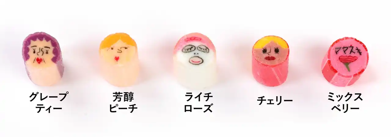 ギャルママやおかん、顔パック中のひとコマまで、どこか見覚えのある“ママ像”を、直径約1cmの小さなキャンディの中に繊細に表現しました。顔そのものを大胆にデザインし、思わず手に取りたくなるインパクトと新しさを兼ね備えています。ひとつひとつ異なる表情の中から「これ、うちの母に似ているかも」と探す楽しさも魅力のひとつです。 |