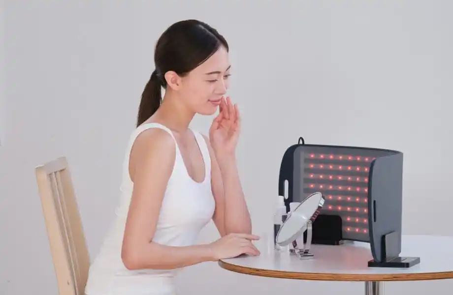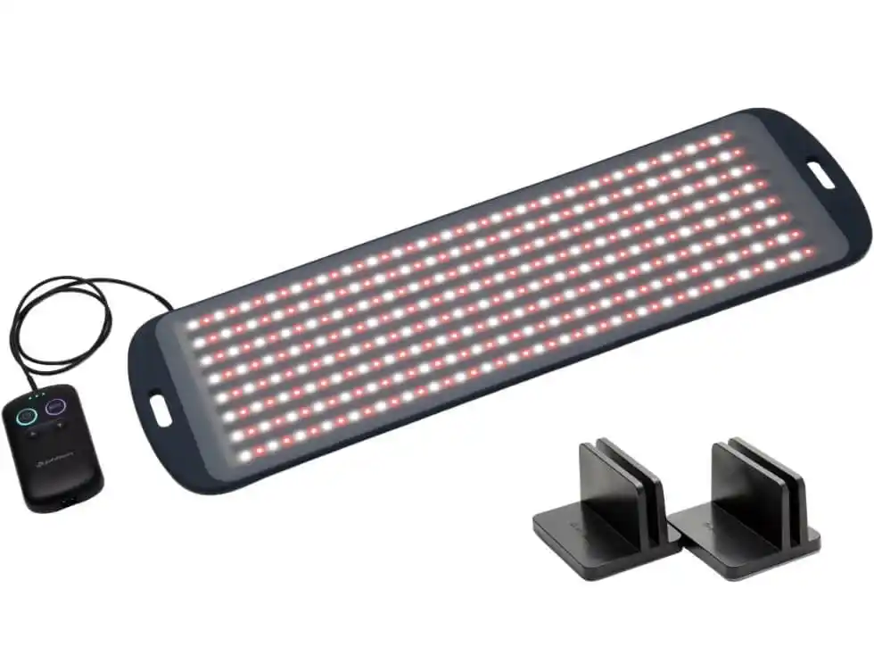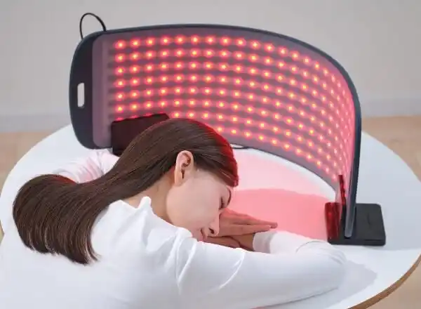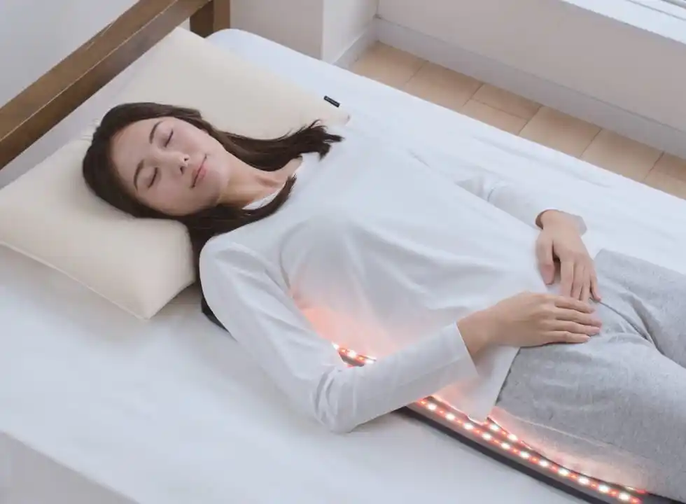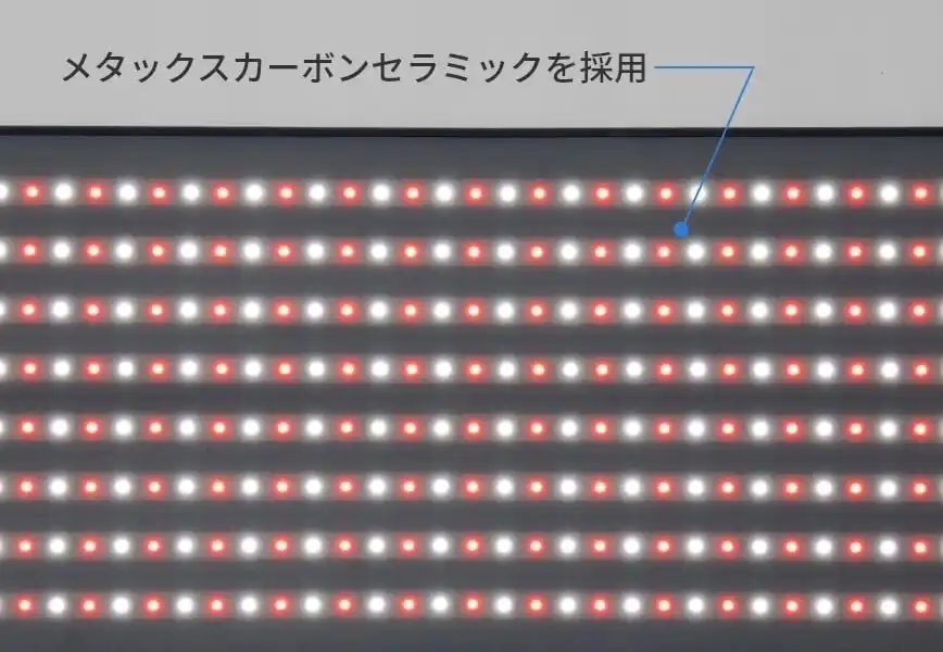 LEDをカバーするシリコーン部分に、独自素材の「メタックスカーボンセラミック」を採用。赤白合計352個のLEDから放出される「健光浴(R)」の光でカラダを包み込み、悩みにアプローチします。 |