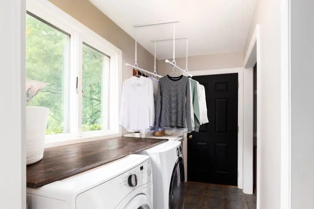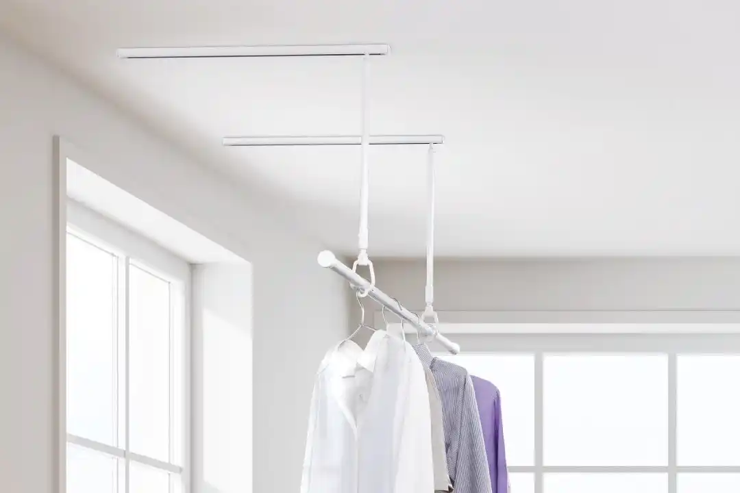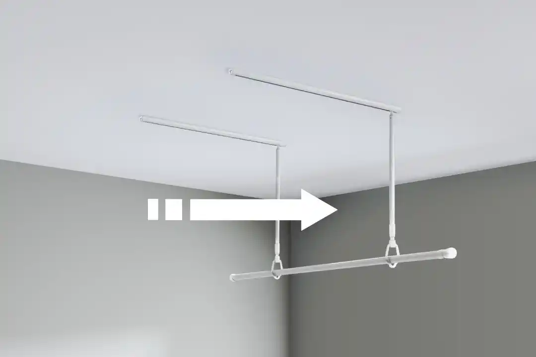| 物干し竿を付けたまま壁際へ移動。動線と空間を有効活用する新構造の室内物干し |