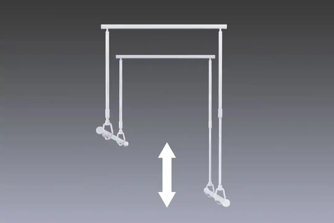 吊材は 560mm~860mm の範囲で高さ調整が可能。 使用者の身長や洗濯物の種類に合わせた柔軟な使い方ができます。 |