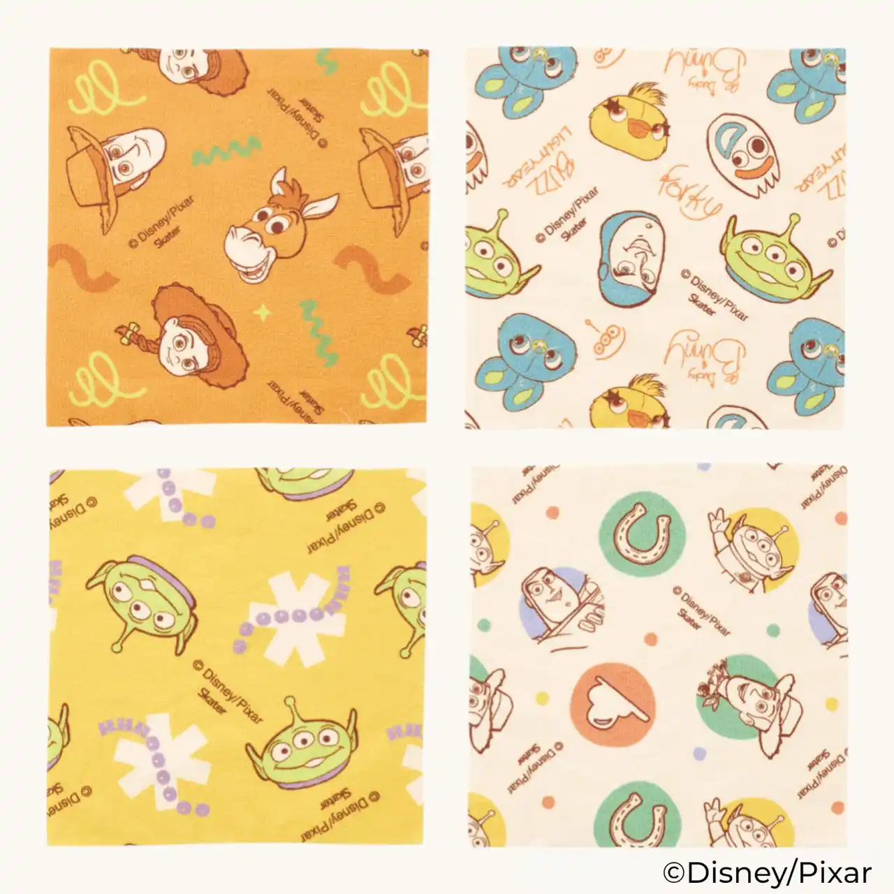 「ウッディ」や「バズ・ライトイヤー」、「エイリアン」などおなじみの仲間たちが勢揃いしたポップなデザイン。 |