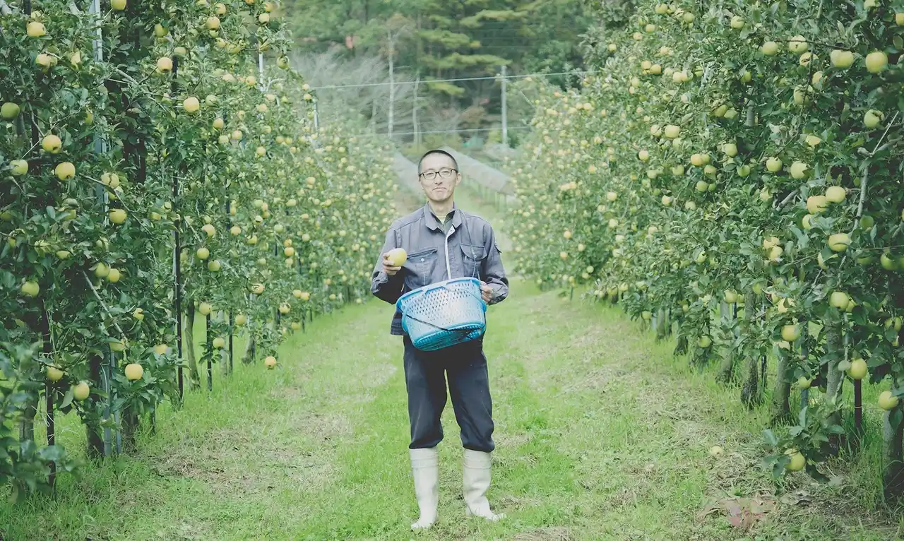 | ヨーロッパで主流の「新わい化栽培」を採用。木をコンパクトに育てることで光が隅々まで届き、果実に貯蔵養分をしっかり送ることで、大木で育ったりんごよりも味が濃くなるのが特徴です。木の高さも4m程度なので摘果や収穫作業が比較的楽に行えます。 | |||||||||||||||||
