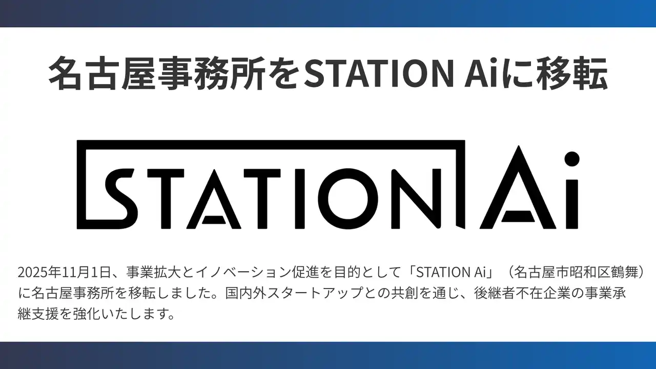 中小企業のM&Aをテクノロジーで支援するマッチングプラットフォームを運営する株式会社M&Aナビ(代表取締役社長:瀧田 雄介、本社:東京都品川区)は、2025年11月1日に名古屋オフィスを、愛知県が推進するオープンイノベーション拠点「STATION Ai」(名古屋市昭和区)へ移転しました。また、移転後5ヶ月で東海エリアにおけるM&A成約2件を達成しており、地域拠点の強化による事業拡大が着実に進んでいます。 |