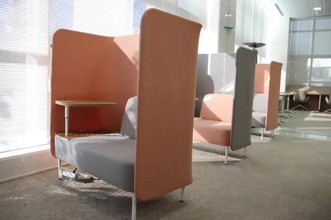 「TELECUBE by OKAMURA(テレキューブ by オカムラ)」(防音性能の高い個室ブース)を2台設置し、就活などの学生活動も応援。 |