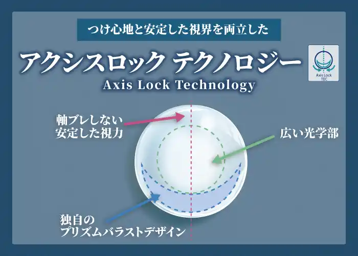 2026年4月1日(水)より、refrear SILICONEシリーズから乱視用コンタクトレンズを発売いたします。 高い酸素透過率を持つシリコーンハイドロゲル素材で、下方に厚みを持たせるプリズムバラストデザインを採用。独自の『アクシスロック テクノロジー』により軸ブレを防ぎ、安定した視力と快適なつけ心地を実現いたします。 |