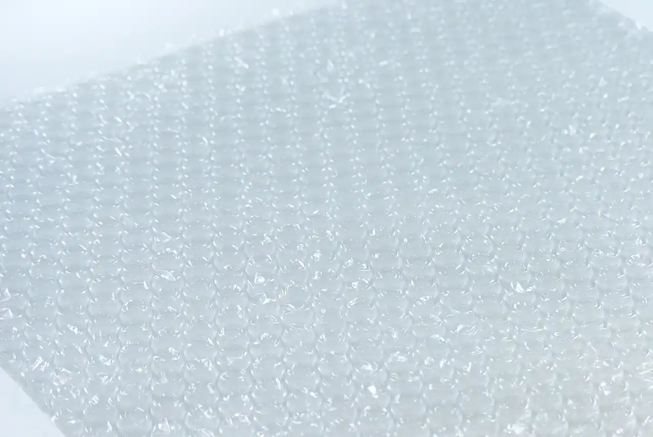 「シン・リサイクルプチ」は家庭や事業所等から排出された使用済み包材から作られた原料であるポストコンシューマを70%以上使用して製造された、環境にやさしい次世代の「プチプチ(R)」です。 |