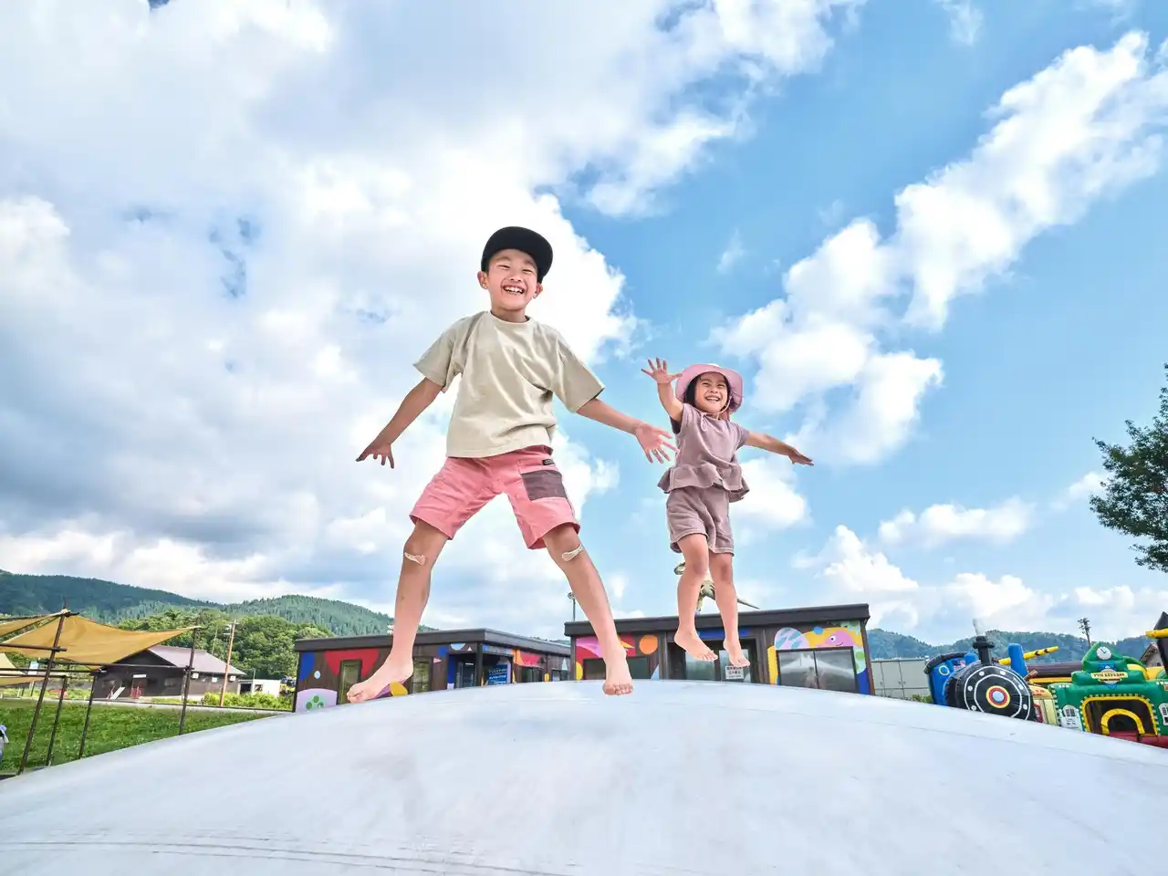 恐竜化石をイメージした全長約70mの「スケルトンダイナソー」や大型トランポリンなど、小さなお子様でも安心して遊べるふわふわ遊具が揃います。 |