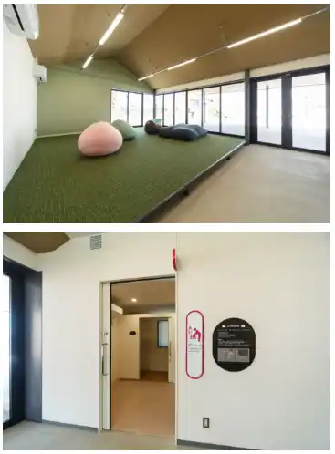 幼い子ども連れの家族もくつろげる休憩室で、ベビールームや授乳室を備え、安心して利用できる環境を整えています。 |