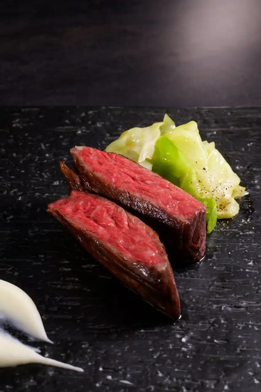 | 青森県五戸町産・A4ランク倉石牛を、京都「CAINOYA」塩澤隆由シェフ監修のもと、中心温度52℃で究極の火入れ施した感動のステーキです。 |