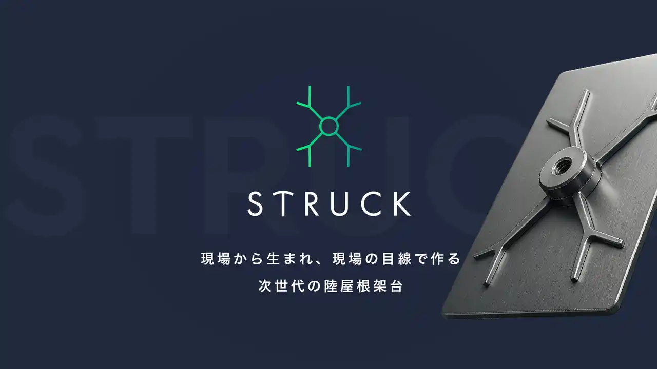 | 「STRUCK」はstructure(構造)× Rack(架台)の造語。「ストッ」とハマる調整のしやすさ、「ラク」に扱える施工性、そして struck=深く印象に残る という意味を一語に込めました。 | ||||||||||||||
